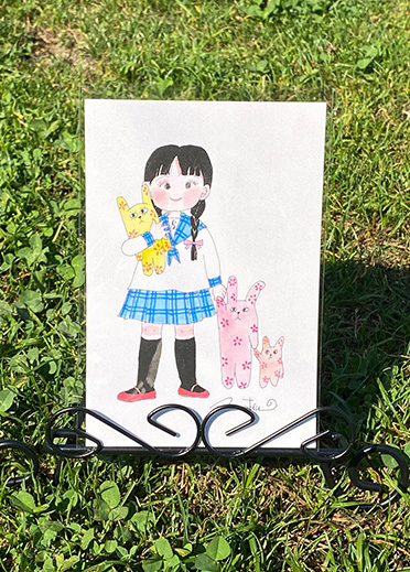 おもて面には右下に作品のタイトルと切手を貼るスペースにはかわいいモチーフが描かれています。