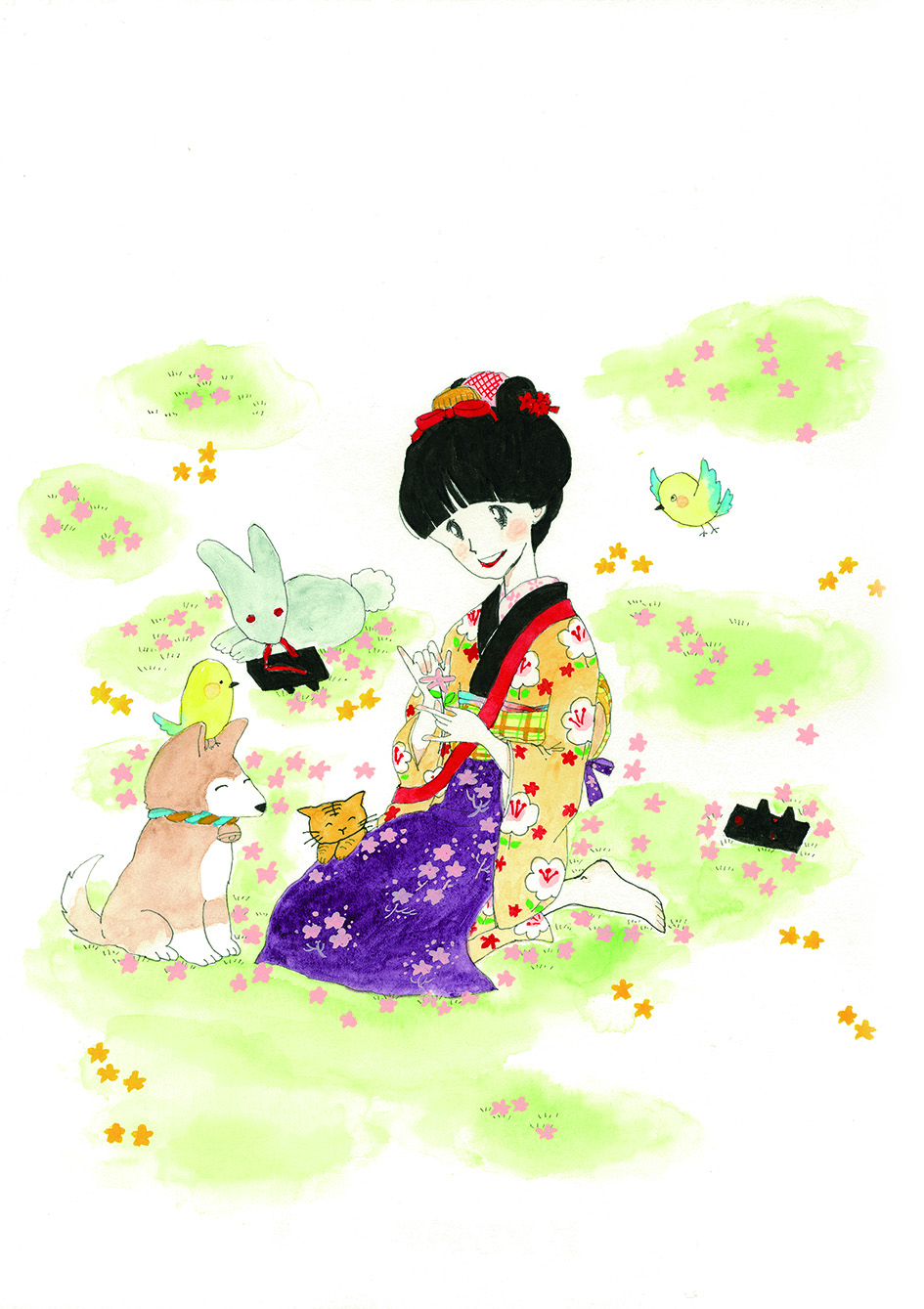 描き起こし名作!「雛ちゃん・時代劇」複製画(サイン入・額入)