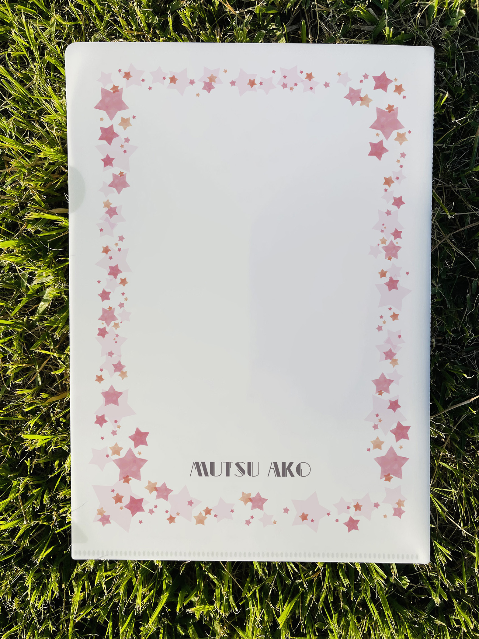 裏面にお名前を入れる事ができ、あなただけのオリジナルのクリアファイルにできます。大切な方のお名前を入れて、プレゼントとしても喜ばれます。