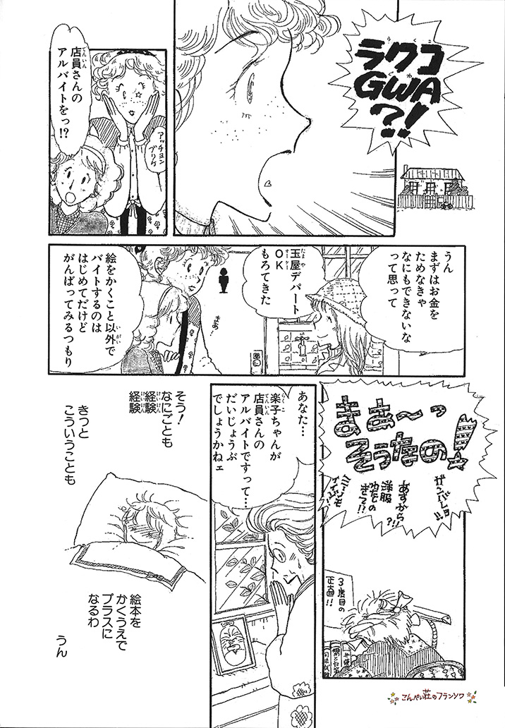 こんぺい荘に住み絵本作家を目指すフランソワと、元編集者・雉田さんとのおとめチックな恋愛物語です。