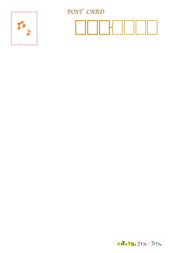 おもて面には作品のタイトルと切手を貼るスペースにはかわいいモチーフが描かれています。
