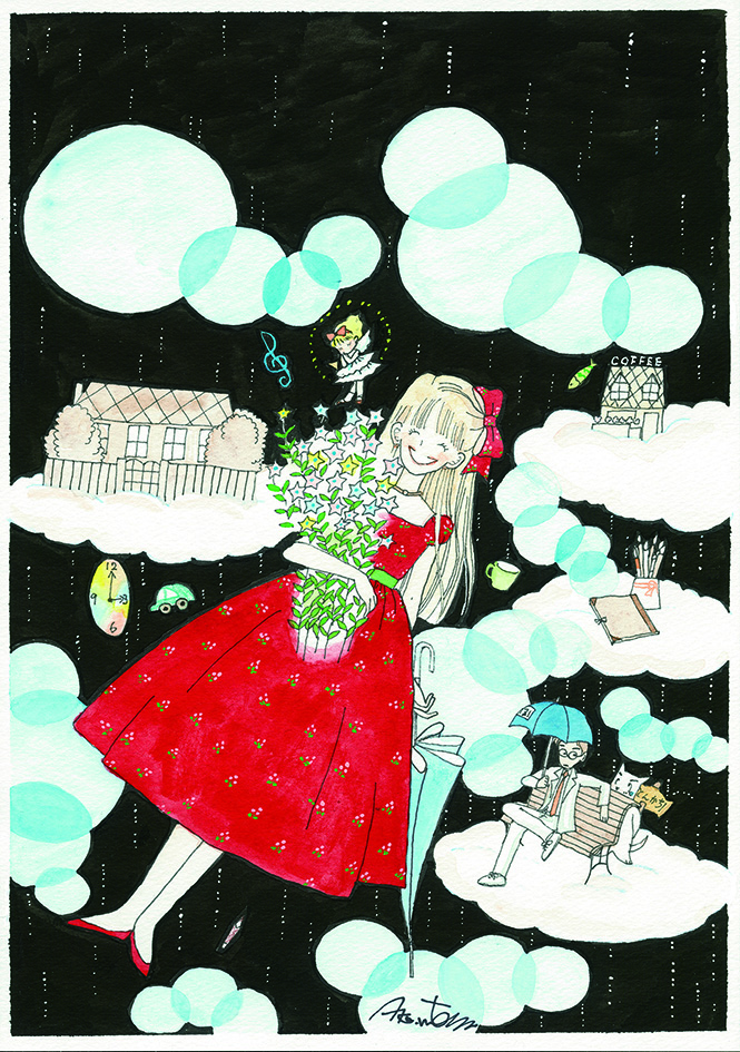 描き起し!「こんぺい荘の〜リズミカルな雨音の中で〜」複製画(サイン入・額無)